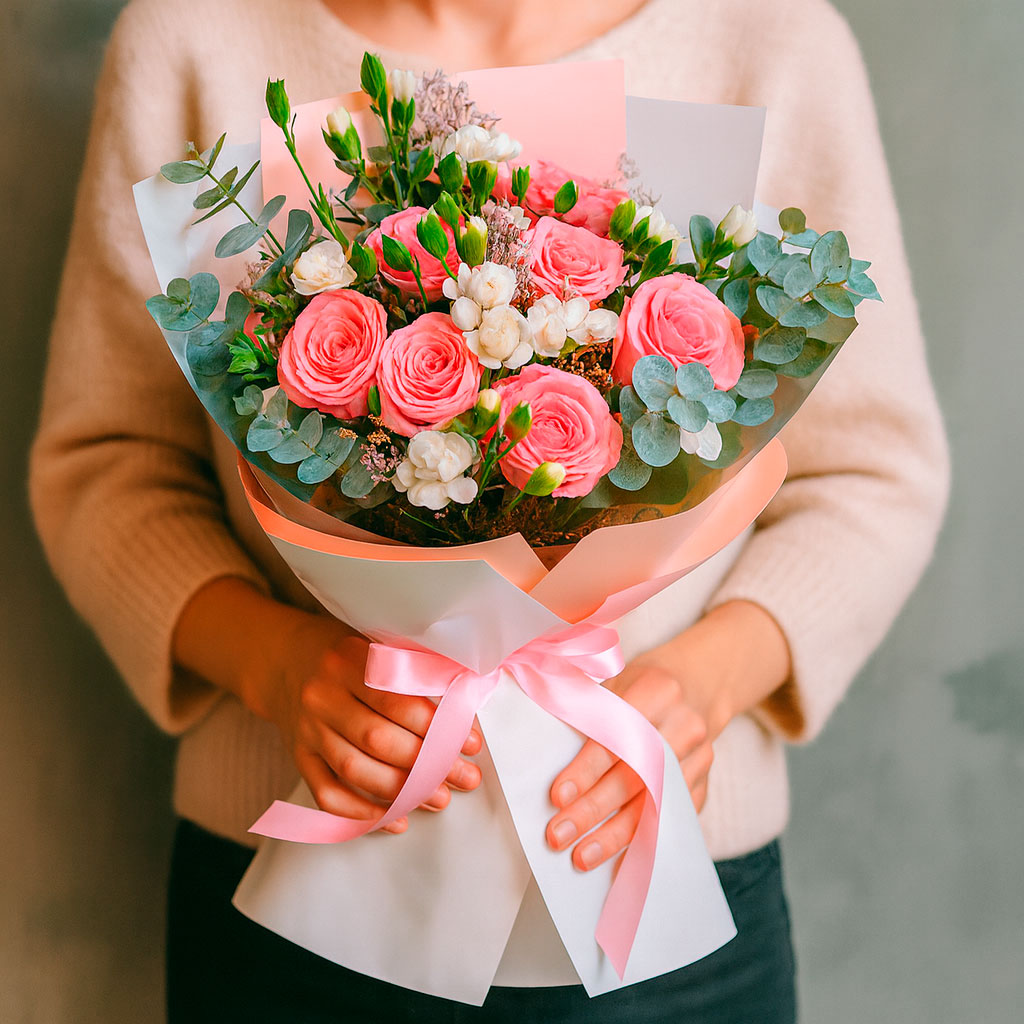 Мы используем только свежие цветы, которые поступают в магазин напрямую с плантаций и оранжерей. Каждый букет собирается вручную опытными флористами.